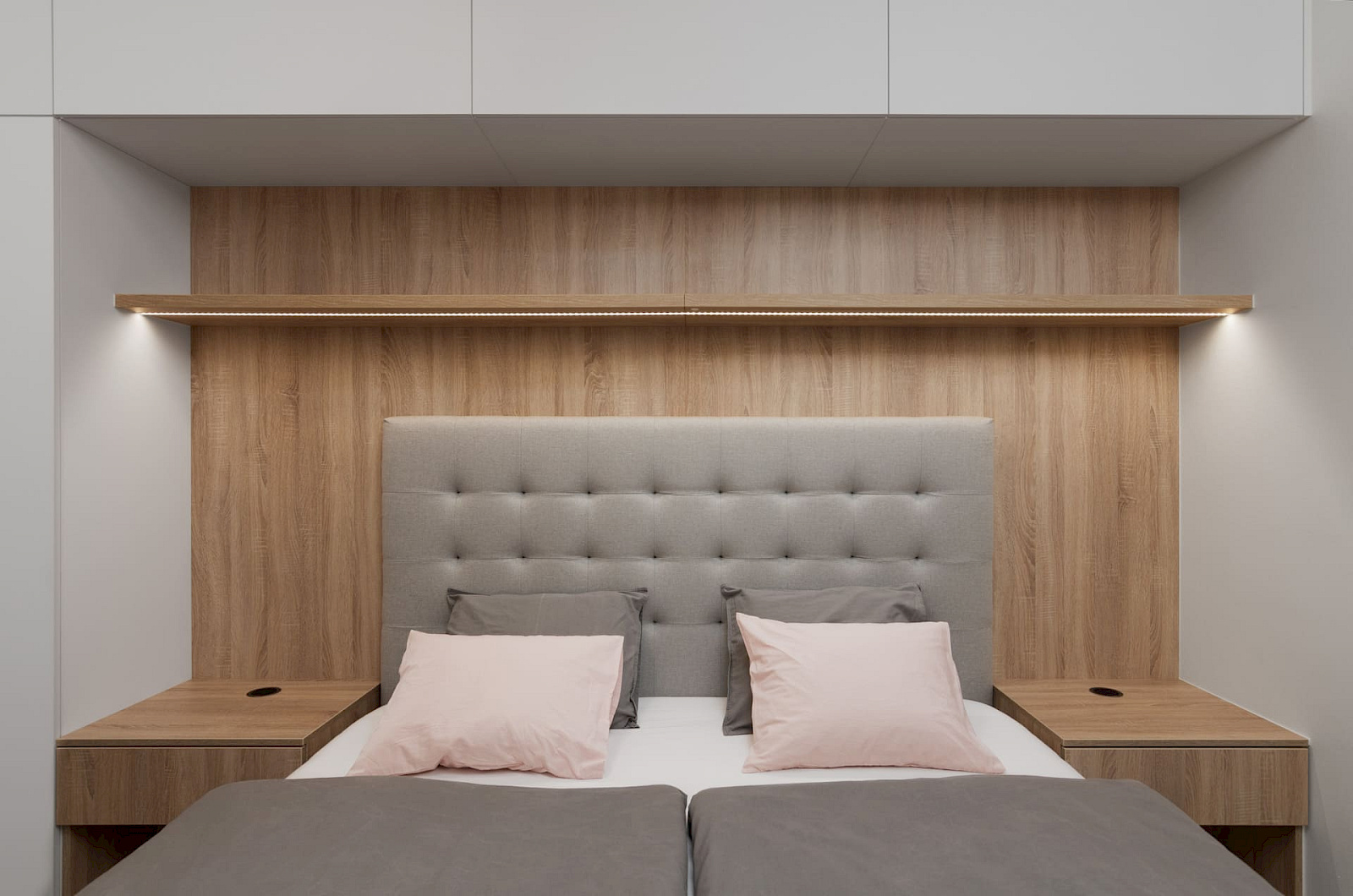 Rezidenční byt v nové výstavbě brněnské lokality Sadová pojal náš architekt v moderním stylu se zachováním tepla domova. Interiéru panují bílé ultramatné povrchy od firmy Egger bez odlesků Alpská bílá doplněné o dřevodekory. Kromě nadčasové kuchyně jsme v bytě realizovali také koupelnu, obývací stěnu s jemným podsvícením či nábytek na míru do ložnice. Chcete interiér na míru? Ozvěte se nám a společně to vymyslíme!