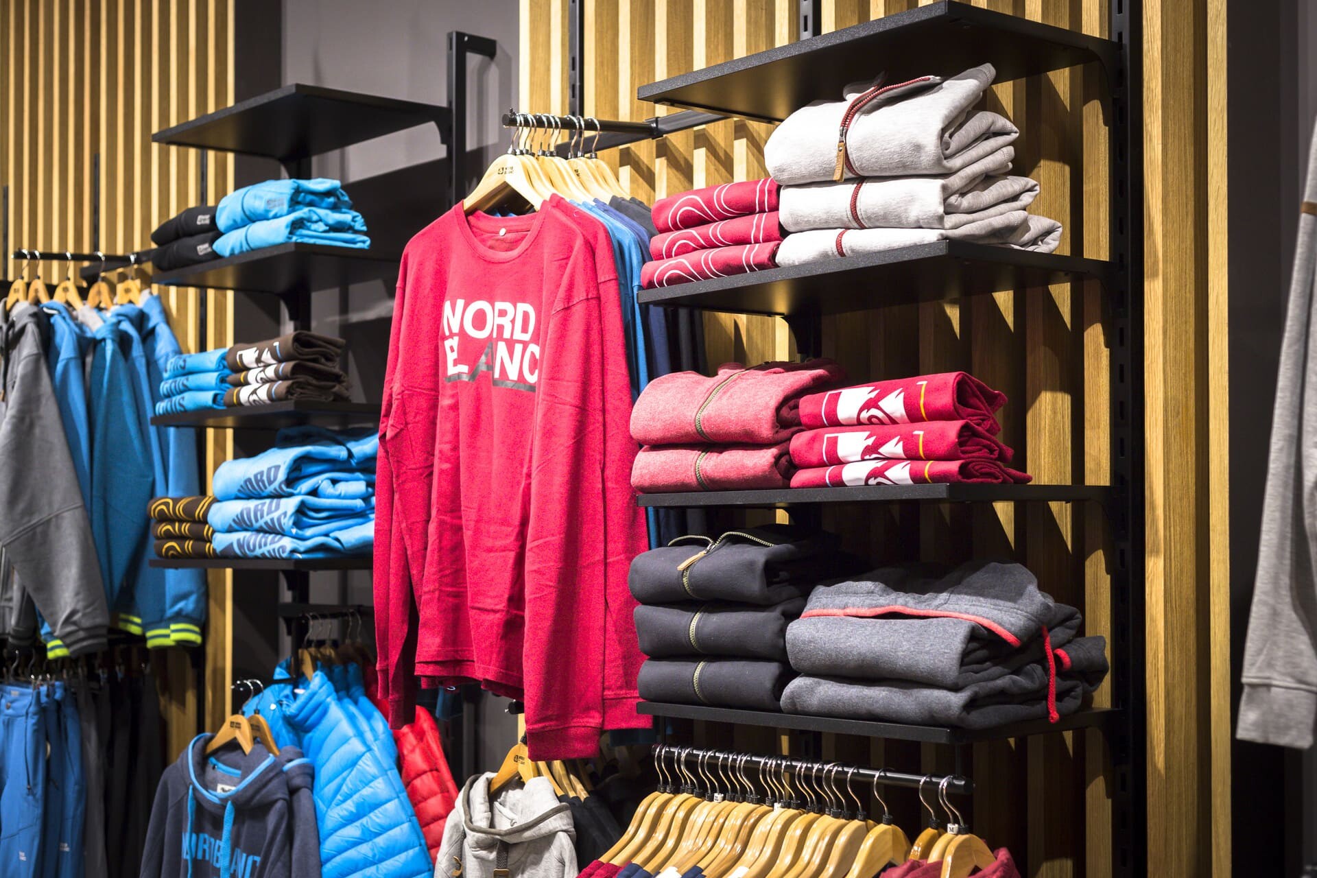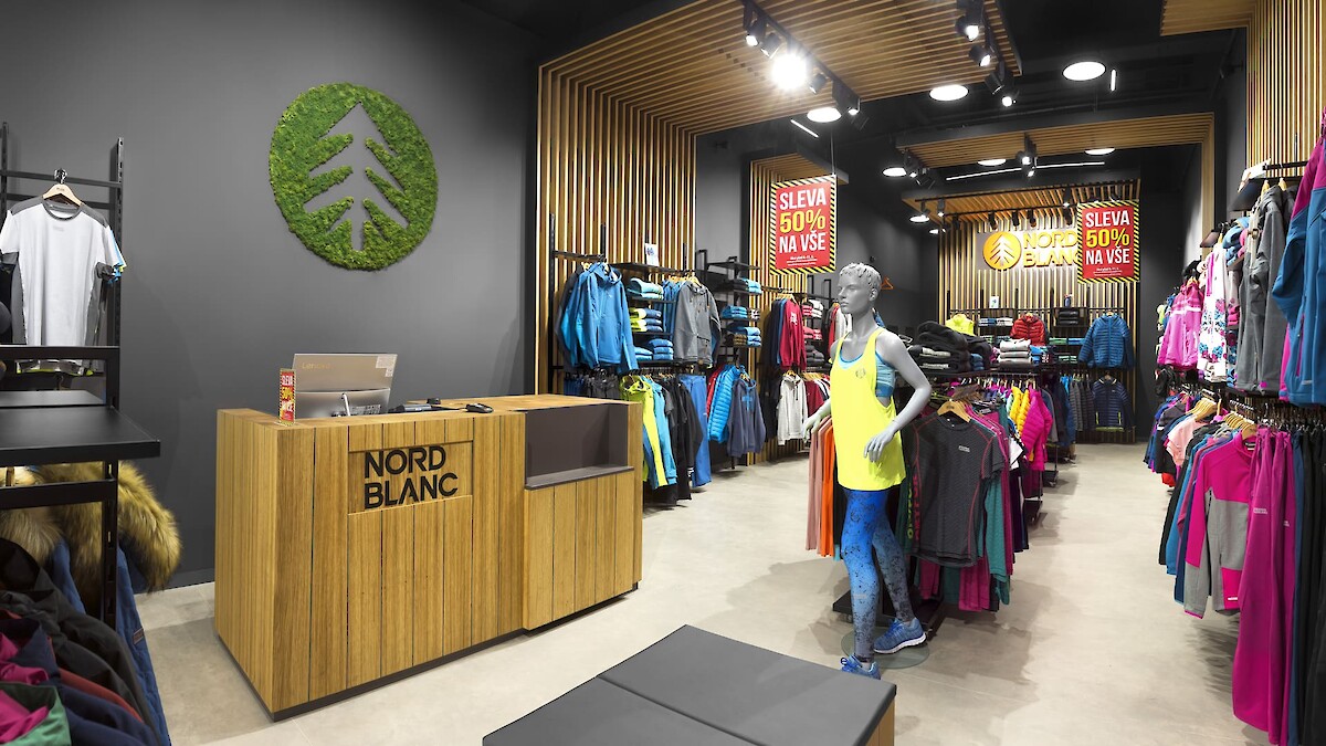 Pro nového zákazníka NordBlanc jsme na začátku roku 2018 zrekonstruovali první prodejnu v centru OC Letňany. Prodejna o velikosti 190m2 je vybavena obložením a stropními podvěsy z dubové dýhy. Pro zavěšení oblečení slouží atypický kovový regálový systém. Součástí dodávky bylo nové SDK příčky, vinylová podlaha, výmalba, elektroinstalace a dodávka nábytku. Potřebujete vybavit svou prodejnu nábytkem na míru? Ozvěte se nám a my vám s vybavením prodejny pomůžeme!