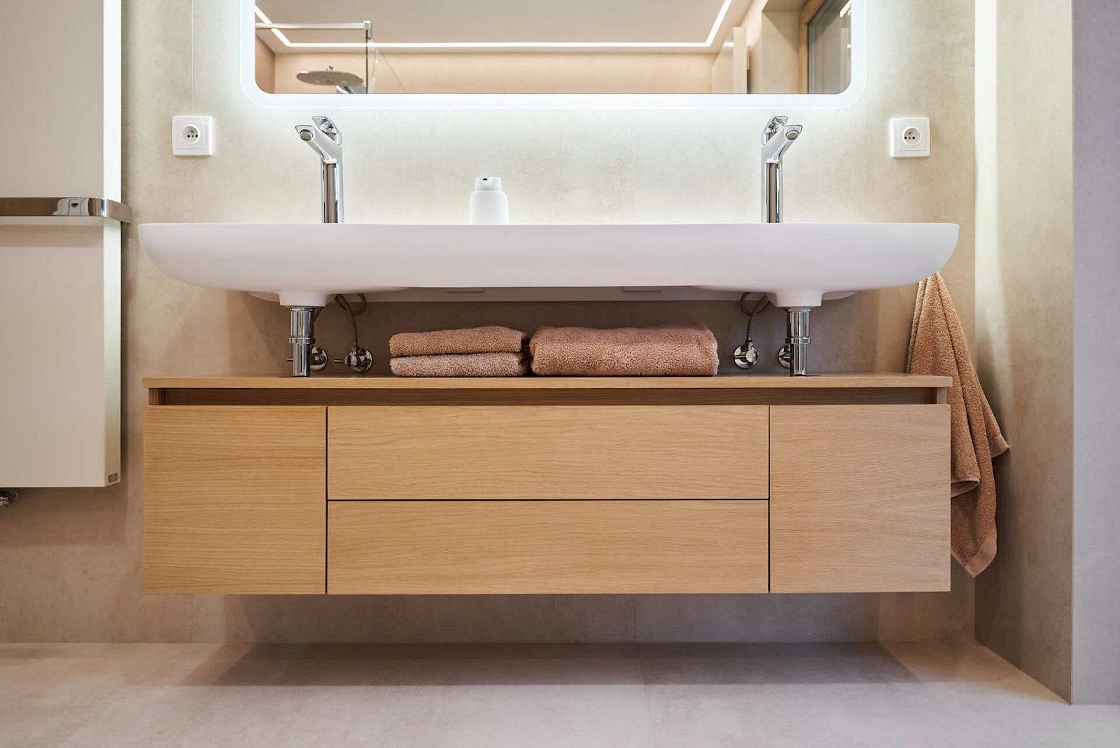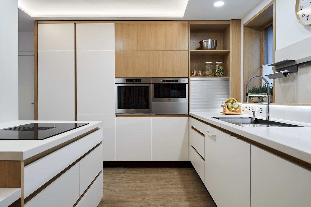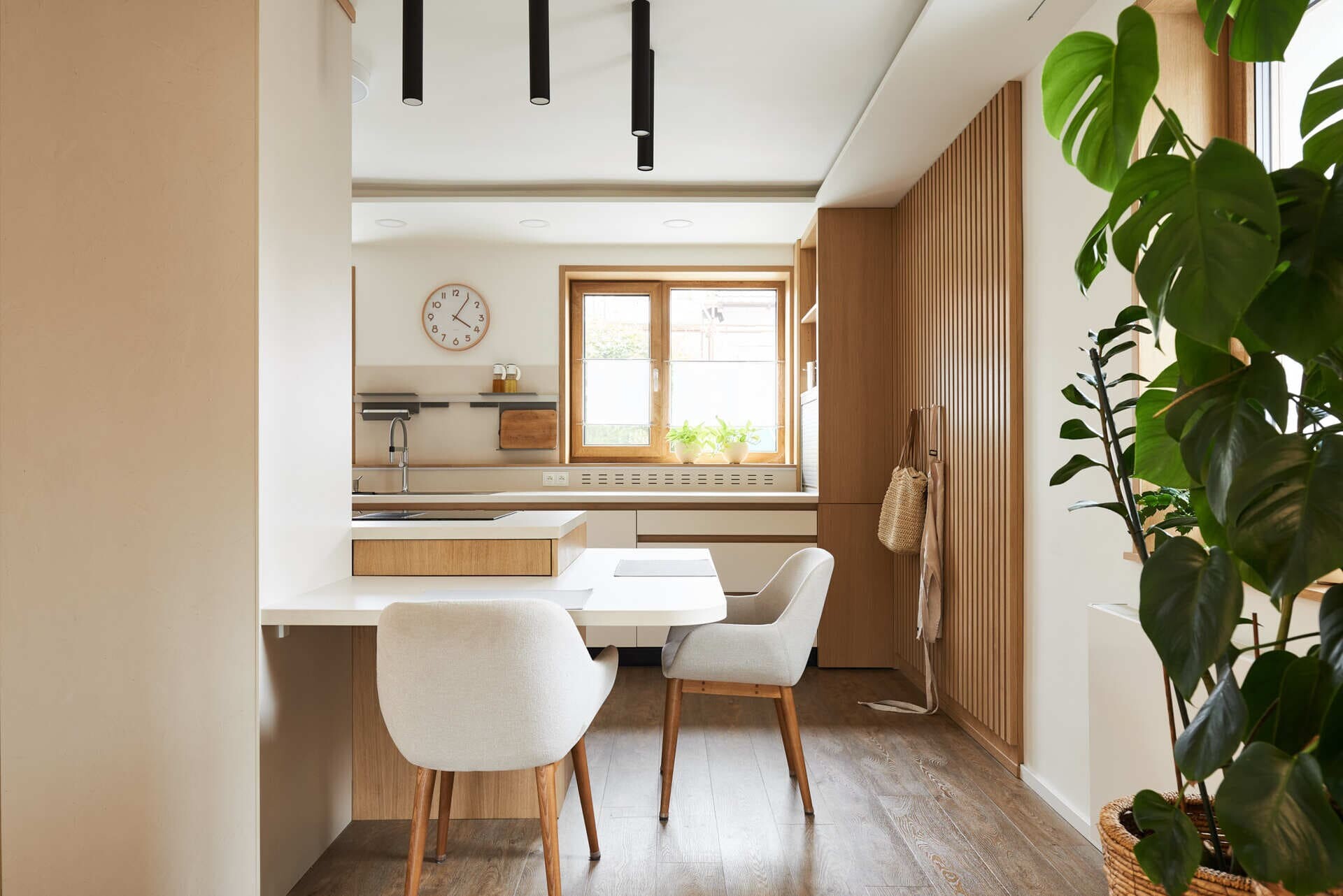 V tomto domě jsme se chopili realizace kuchyně, jídelny, obývacího pokoje i koupelny. Použili jsme elegantní a nadčasovou kombinaci bílé barvy s přírodními materiály. Mysleli jsme ale i na praktickou stránku bydlení, a proto jsme do jednotlivých místností zařadili dostatek úložných prostor. Prohlédněte si naši práci – a pokud vás zaujme, neváhejte nás kontaktovat.