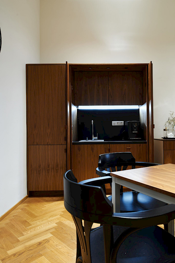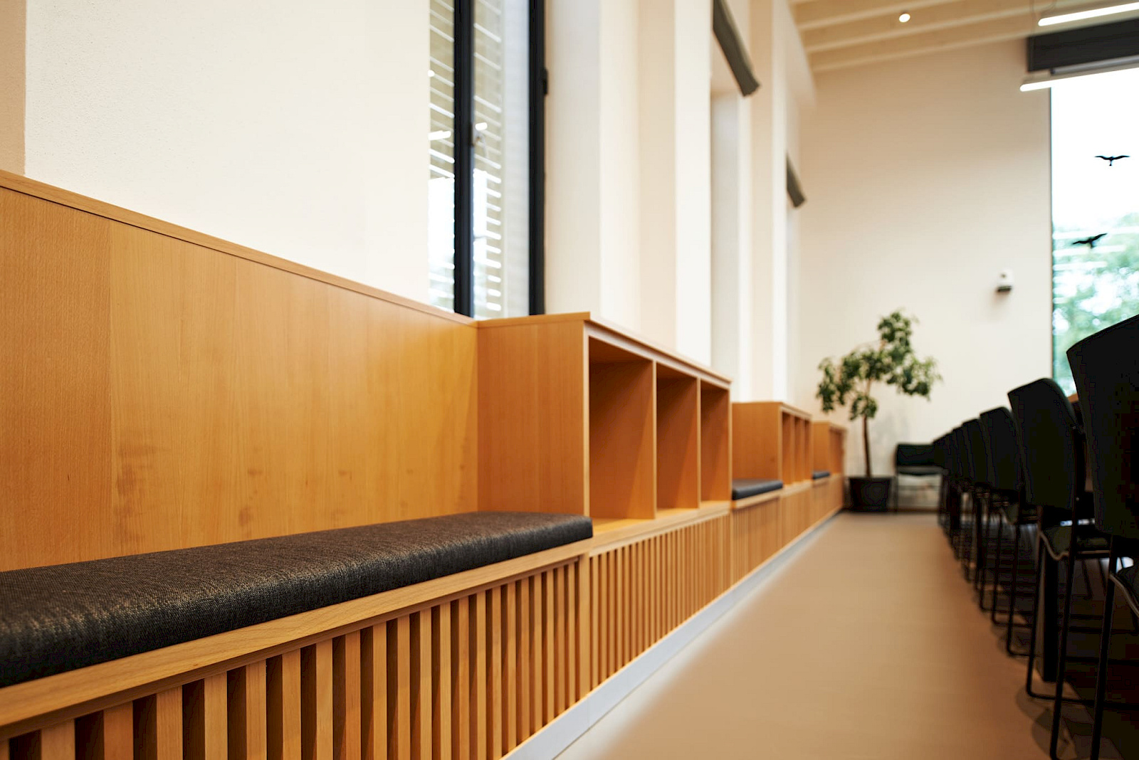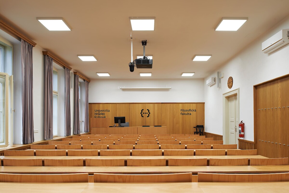 V interiérech Filozofické fakulty Univerzity Hradec Králové se nám podařilo skloubit tradici s moderním a pohodlným zázemím pro studenty i vyučující. Důležitým prvkem nejen v oblasti nábytku se stalo dřevo působící lehkým a uklidňujícím dojmem, v učebnách však nechybí ani výrazné barvy a kontrasty. Kromě samotných učeben jsme se zhostili i realizace praktických konferenčních prostor nebo také knihovny.