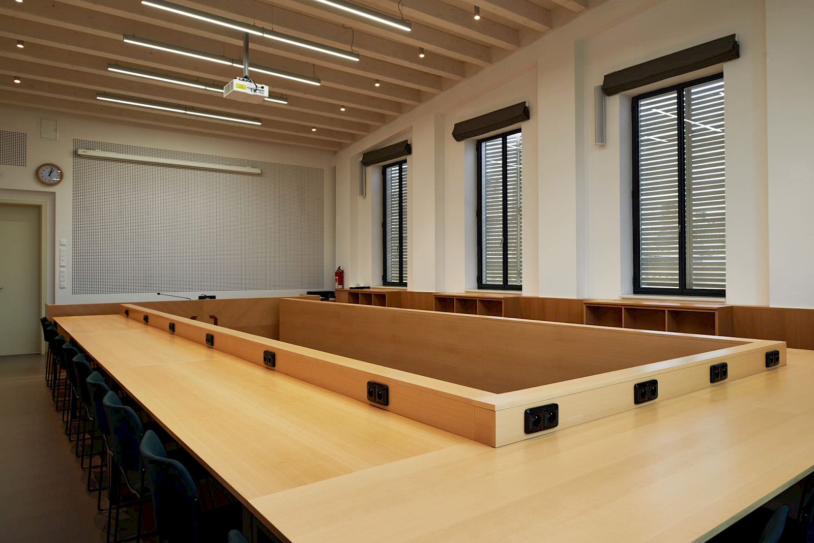 V interiérech Filozofické fakulty Univerzity Hradec Králové se nám podařilo skloubit tradici s moderním a pohodlným zázemím pro studenty i vyučující. Důležitým prvkem nejen v oblasti nábytku se stalo dřevo působící lehkým a uklidňujícím dojmem, v učebnách však nechybí ani výrazné barvy a kontrasty. Kromě samotných učeben jsme se zhostili i realizace praktických konferenčních prostor nebo také knihovny.
